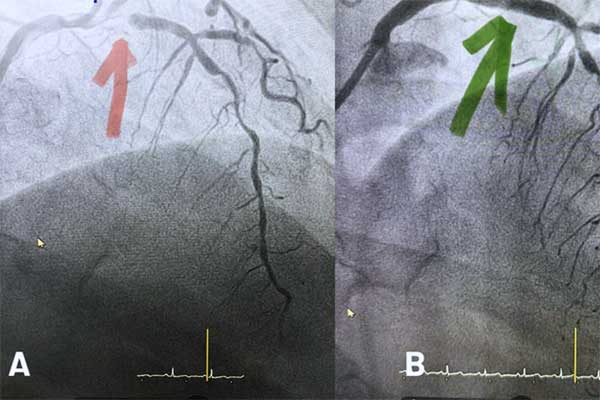 Bác sĩ chuyên khoa 1 Hồ Thị Tuyết Mai, Trung tâm Tim mạch cho biết, qua thực hiện các cận lâm sàng, bệnh nhân được phát hiện có dấu hiệu nhồi máu cơ tim cấp tính, do sự tắc hẹp của một nhánh động mạch vành.