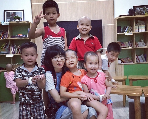 Thuần và các bệnh nhi ung thư tại Viện Huyết học và Truyền máu trung ương - Ảnh: Nhân vật cung cấp