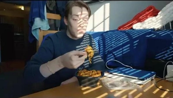 Hình ảnh dựng lại sự việc: JC ăn phần mì để qua đêm trong tủ lạnh. Ảnh: Cắt từ YouTube.