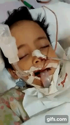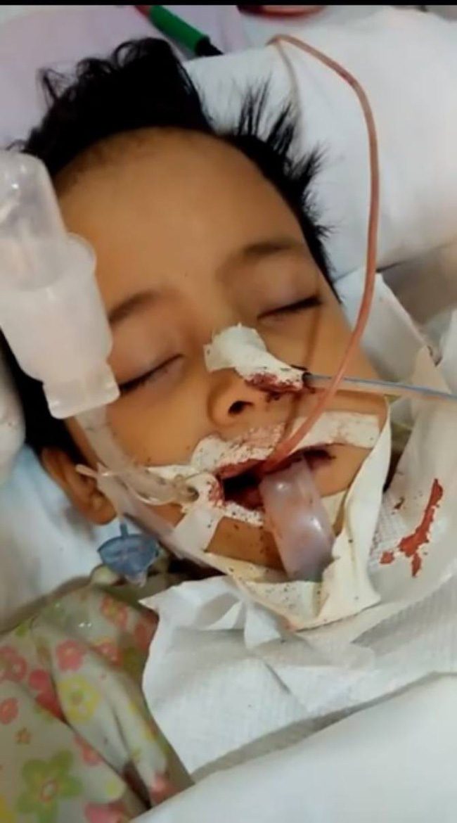 Hình ảnh cậu bé Bryle khi đang hôn mê.