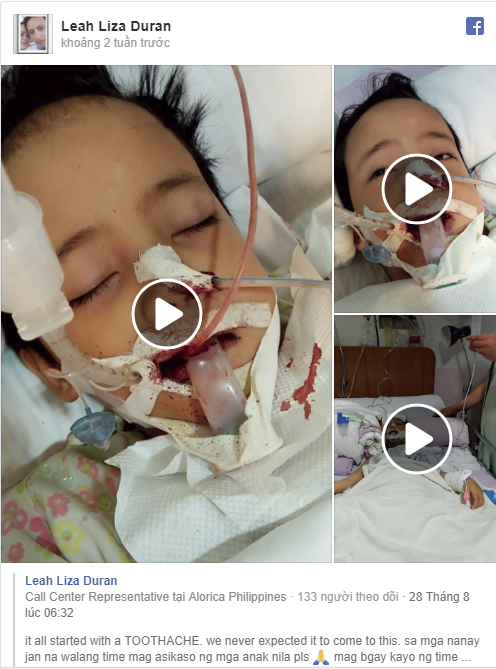 Mới đây, sau khi đã vượt qua được những ngày "sóng gió", một bà mẹ người Philippines đã lên tiếng kêu gọi tất cả các bậc phụ huynh hãy quan tâm đến việc đánh răng của con, bởi hành động tưởng chừng đơn giản ấy có thể lấy mạng một đứa trẻ như thế này.