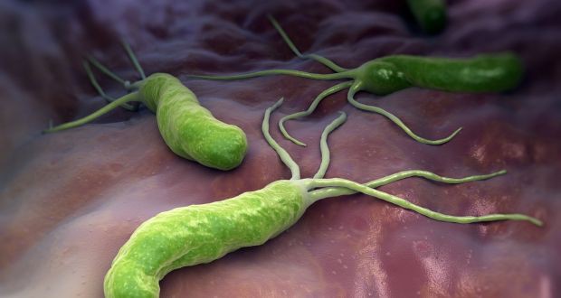 Vi khuẩn này sống trên niêm mạc dạ dày và thường không gây ra triệu chứng gì. Nhưng một khi chúng "hung hăng" lên thì có thể khiến cho người bị nhiễm khuẩn phải chịu các triệu chứng như loét dạ dày, thường phải điều trị bằng kháng sinh, ví dụ như khả năng kháng kháng sinh clarithromycin.