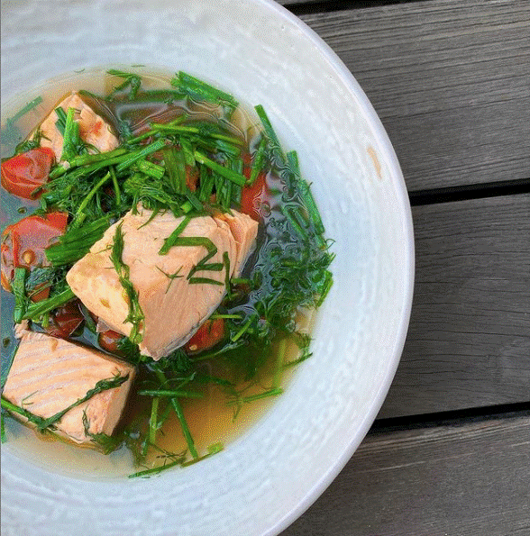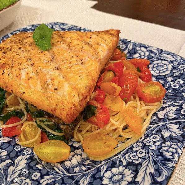Món ăn từ cá hồi do Tăng Thanh Hà nấu.