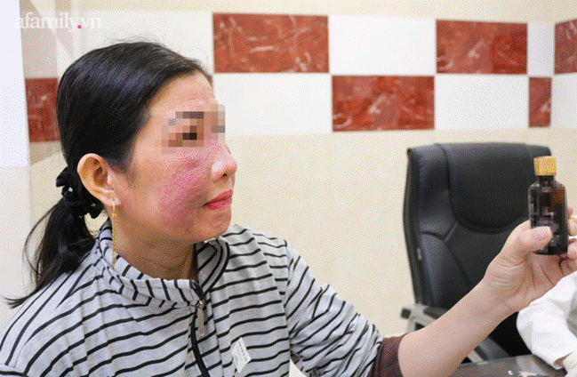 Sau 3 ngày sử dụng mặt chị H. bị sưng nề, đỏ rát kèm ngứa. Chị liên hệ lại người bán thì được tư vấn là do mỹ phẩm "đang phát huy tác dụng" nên tiếp tục sử dụng. Hơn 1 tuần sau mặt chị sưng nề, xuất hiện nhiều nốt sần đỏ, ngứa, rát rất khó chịu.