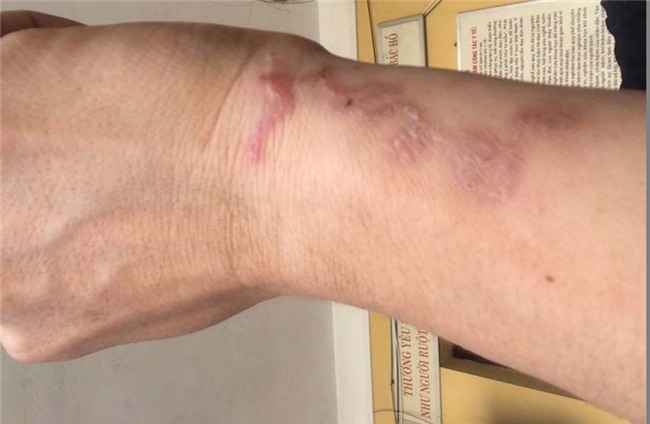 Hình ảnh ấu trùng chạy ra khắp cẳng tay khi bắt đầu dùng thuốc. Ảnh: NVCC.