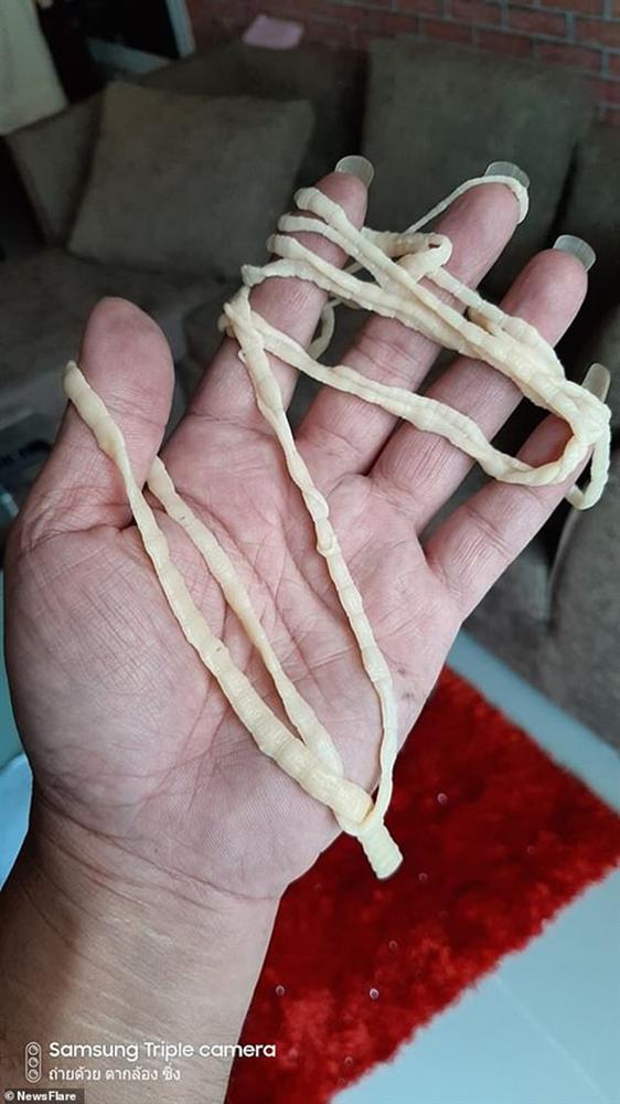 Hóa ra thứ mà anhh Kritsada kéo ra là một con sán dài gần 10m.