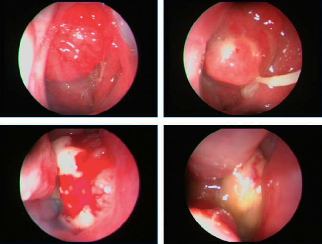 Khi nội soi, bác sĩ phát hiện khối u ở loa vòi, lan theo vòi Eustache ra tai giữa đây là nguyên nhân khiến bà Thái bị ù tai, nghe kém và đau trong tai lan ra vùng xương chũm. Soi tai: màng nhĩ thủng, có u sùi, hoại tử, dễ chảy máu, u có thể qua hòm nhĩ và lan ra ống tai ngoài.