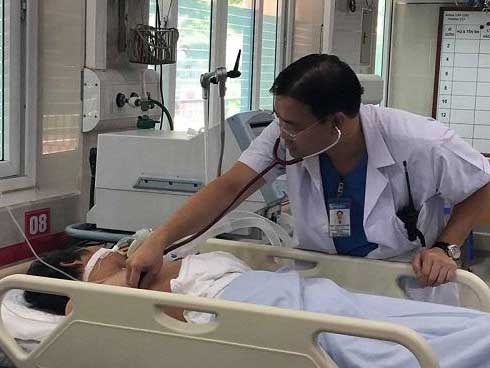 TS.BS Nguyễn Anh Tuấn, Trưởng phòng cấp cứu tổng hợp, khoa Cấp cứu – Bệnh viện Bạch Mai cho biết, sau hơn 1 tiếng tích cực cấp cứu, hạ nhiệt, hiện thân nhiệt bệnh nhân đã xuống 38,5 độ nhưng vẫn đang hôn mê.