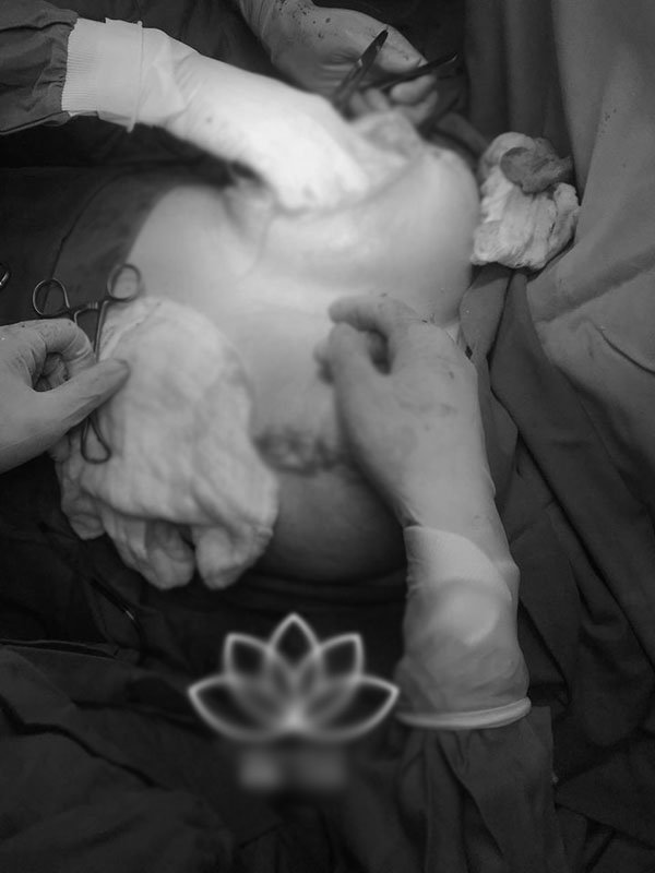 Một bên đã cắt bỏ 60% thể tích và được khâu lại cẩn thận. Bên còn lại vẫn đang được phẫu thuật.