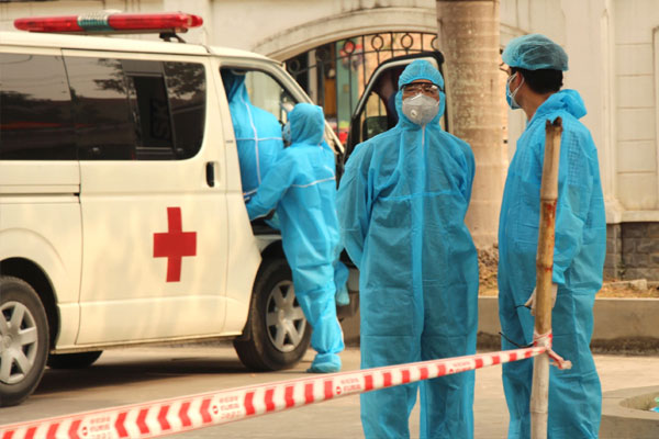 Nhân viên y tế chở bệnh nhân COVID-19. Ảnh: Đ.Tùy