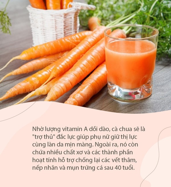 Nhờ lượng vitamin A dồi dào, cà chua sẽ là "trợ thủ" đắc lực giúp phụ nữ giữ thị lực cùng làn da mịn màng. Ngoài ra, nó còn chứa nhiều chất xơ và các thành phần hoạt tính hỗ trợ chống lại các vết thâm, nếp nhăn và mụn trứng cá sau 40 tuổi.