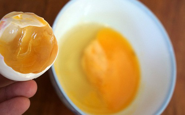 Bình thường trứng có ranh giới rõ ràng giữa lòng đỏ và lòng trắng, lòng đỏ ở giữa lòng trắng. Khi trứng bị ung thì ranh giới bị phá vỡ, màu sắc và mùi vị thay đổi theo diễn biến thời gian (màu vàng của lòng đỏ biến màu, mùi tanh đặc trưng biến thành thối do protein biến chất).