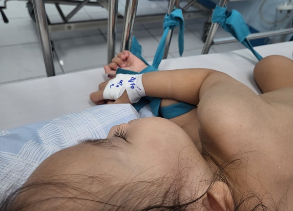 Tại Khoa Cấp cứu, bác sĩ đặt nội khí quản giúp thở, chích tủy xương truyền thuốc. Chẩn đoán lúc này là tay chân miệng độ 4, nguy kịch. Khi chuyển lên Khoa Hồi sức tích cực Chống độc, bé lập tức được chỉ định lọc máu. Đây là phương án cuối cùng.