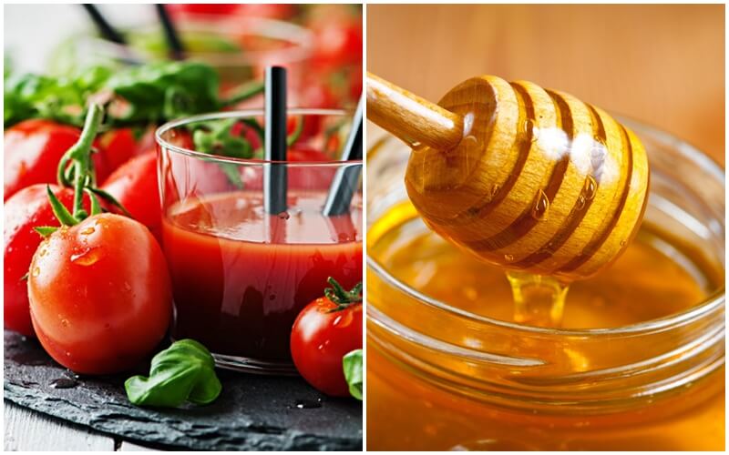 Khi kết hợp với mật ong với nước ép cà chua sẽ tạo thành thức uống tốt cho làn da. Nếu như cà chua có chứa vitamin và sắt giúp bạn loại bỏ sạm da, chống lại sự đổi màu của da, hỗ trợ điều trị mụn trứng cá, thu nhỏ lỗ chân lông. Thì mật ong có chứa các enzym, nhiều vitamin, khoáng chất và nước nên có thể giúp làn da khoẻ mạnh, tươi tắn hơn.