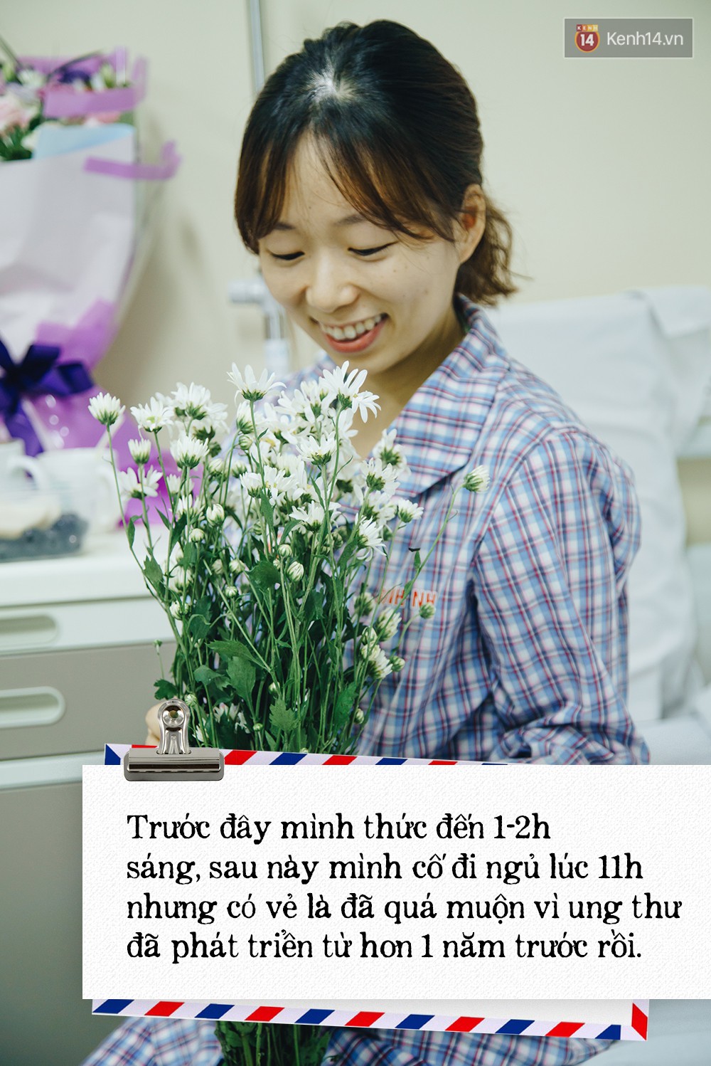 Mình là như vậy mà, đa số là đi ngủ lúc hơn 12h, có khi là 1-2h sáng. Cách đây khoảng 3-4 tháng thì mình có thay đổi, đi ngủ lúc 11h nhưng có vẻ là đã quá muộn vì ung thư đã phát triển từ hơn 1 năm trước rồi.