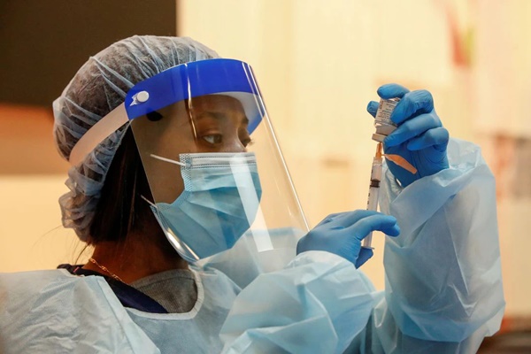 Nhân viên y tế Mỹ chuẩn bị vaccine Moderna phòng COVID-19 để tiêm cho người dân tại Nhà thờ Trinity United ở thành phố Chicago, bang Illinois, Mỹ, ngày 13 tháng 2 năm 2021. Ảnh: REUTERS / Kamil Krzaczynski