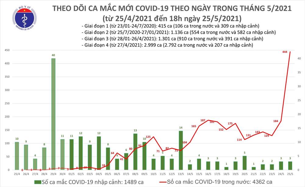 - Trong ngày 25/5, Việt Nam ghi nhận thêm 447 ca mắc mới: