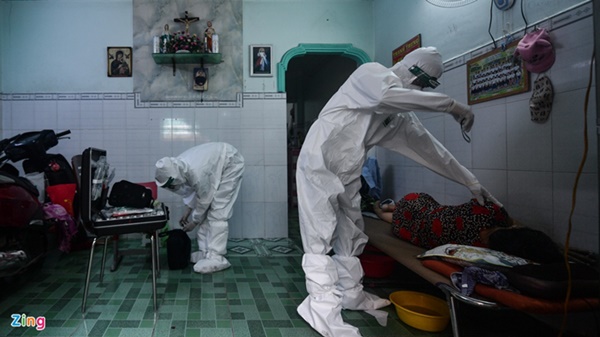 Một F0 có dấu hiệu chuyển nặng, được nhân viên cấp cứu 115 khám sức khỏe tại nhà. Ảnh: Duy Hiệu.