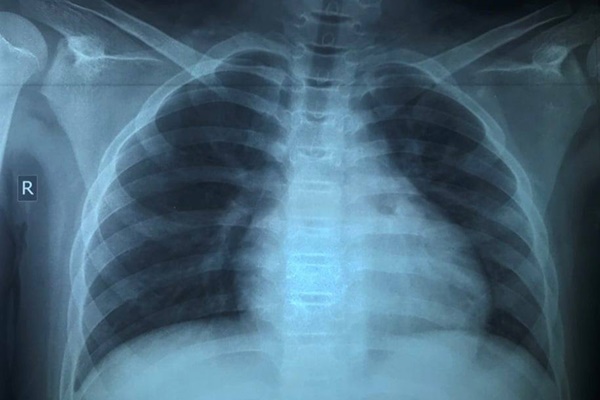 Tại bệnh viện, nhịp thở của bệnh nhi 26-28 lần/phút, không quá nhanh so với tuổi. Tuy nhiên, chỉ số SpO2 của trẻ giảm xuống 92%, kết quả xét nghiệm PCR dương tính với nCoV. Kết quả chụp X-quang có tổn thương phổi nhiều, rối loạn đông máu.
