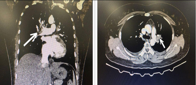 Hình ảnh CT lồng ngực bệnh nhân bị tắc động mạch phổi cấp tính. Ảnh BVCC