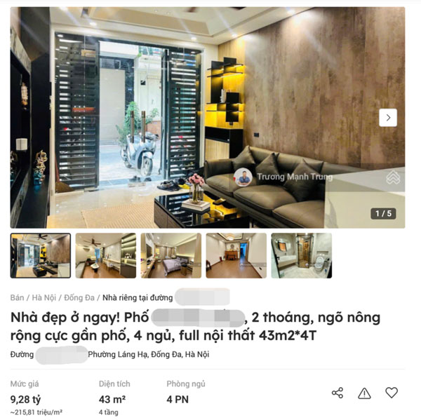 Tương tự, anh Lê Anh Dũng (quê Lạng Sơn) cũng chia sẻ, cách đây hơn 1 tuần, anh được môi giới dẫn đi xem căn nhà 40m2, 6 tầng trên một con ngõ tại đường Nguyên Hồng (quận Đống Đa). Tuy nhiên, anh Dũng "ngã ngửa" khi môi giới cho biết giá của căn nhà lên tới 15,5 tỷ đồng, tương đương 380 triệu đồng/m2.