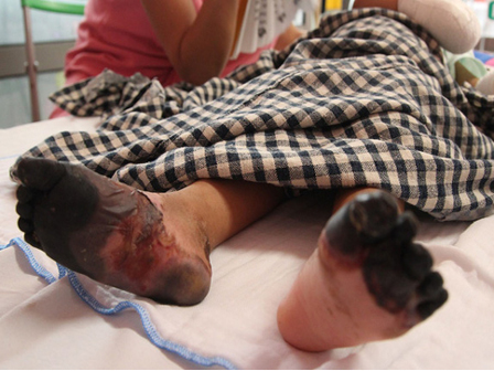 Tình trạng nhiễm trùng diễn ra quá nhanh, các virus trên cơ thể cũng liên tục tấn công tạo thành các độc tố phá hủy da và tế bào cơ chân của Collen.