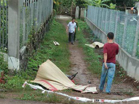 Tại hiện trường, thi thể 2 nạn nhân nằm cách nhau khoảng 10m. Trong đó, một nạn nhân nằm ngửa sát mép tường rào nhà dân, người còn lại tử vong trong tư thể nằm ngửa cạnh chiếc xe máy.
