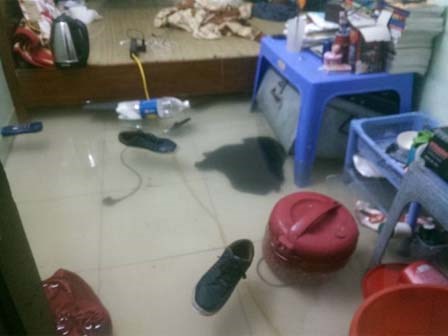 Nhìn dòng nước đục ngầu tràn vào nhà, người dân Thủ đô đã phải thức đêm để chuyển đồ, tát nước trong mệt mỏi, ngán ngẩm.