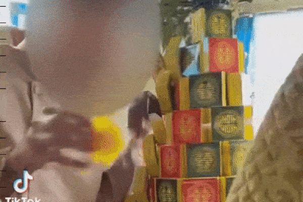 Clip phản cảm: Được nhờ bê tráp ăn hỏi, nam thanh niên hồn nhiên bóc bánh trong lễ để ăn vì "nhà cô dâu xa quá"