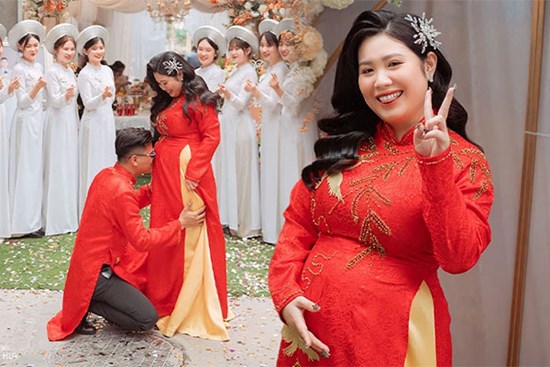Cô dâu bụng bầu 5 tháng "quẩy" trong ngày ăn hỏi: Gái xinh Hải Phòng đồng ý lấy chồng cách 1700km sau 2 lần gặp mặt