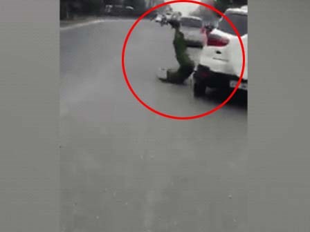 Chiến sĩ công an bị ô tô Ford Ecosport lạng lách hất văng xuống đường