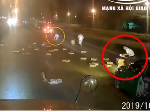 Clip: Xe tải đánh rơi hàng chục thùng mì tôm giữa đường, các tài xế phía sau lập tức tranh nhau "hôi của"