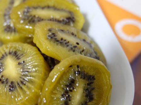 Mứt kiwi dẻo không cần phèn chua hay nước vôi nhưng từng miếng mứt vẫn trong và vị ngon thì không thể chê vào đâu được.