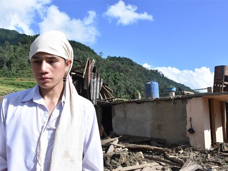 Chứng kiến cảnh nhà bị lũ dữ làm cho tan nát, 5 người thân cũng bị cuốn mất, Lò Văn Mường chỉ biết đứng lặng nhìn mà không thể khóc.