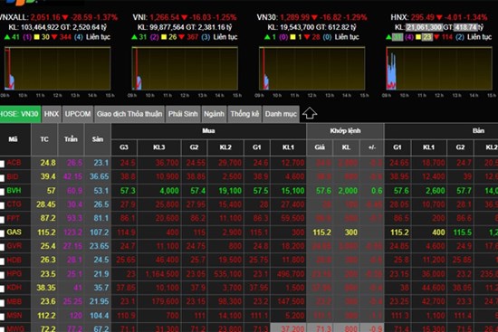Áp lực bán cổ phiếu tăng vọt, sắc đó bao trùm trên thị trường chứng khoán. Chỉ số VN-Index tụt giảm về ngưỡng 1.300 điểm.