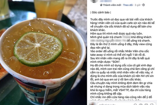 Nghi vấn một quán trà chanh ở Hà Nội mang cốc giấy cũ còn dính son ra cho khách dùng khiến cư dân mạng xôn xao