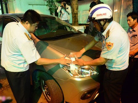 Cẩu 2 xe biển xanh trước quán nhậu quận 1 về trụ sở công an
