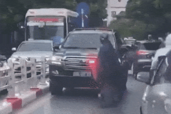 Để tránh ùn tắc, khi 1 CSCĐ cấm ô tô rẽ xuống đường thì liền bị tài xế xe biển xanh tát vào mặt