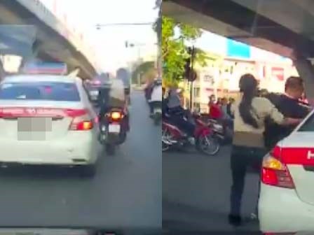 Người đàn ông chạy SH chặn xe taxi, dọa đánh tài xế vì không được tạt đầu