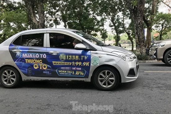 Xe taxi dán logo quảng cáo web cờ bạc nghênh ngang diễu phố Hà Nội