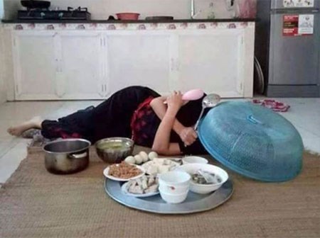 Bật khóc rồi bật cười chính là hai cảm xúc của cư dân mạng sau khi xem xong bức ảnh "Mẹ chờ cơm" này