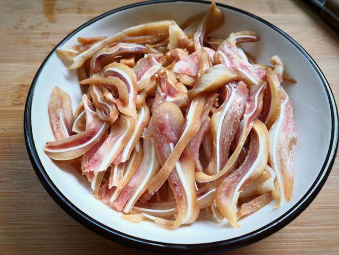- Tai heo đã luộc chín đem thái thành các miếng mỏng.
