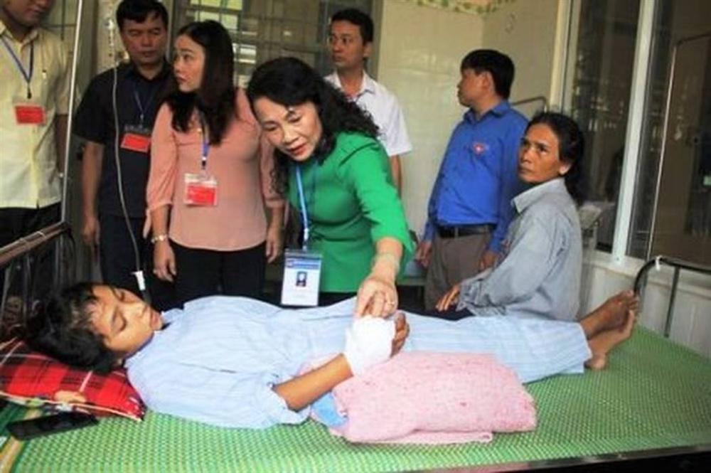 Thứ trưởng Bộ GD&ĐT Nguyễn Thị Nghĩa đã đến thăm hỏi, động viên em Hồ Thị Hà. (Ảnh: CAND)