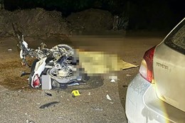 Người đàn ông ngã xuống đường, tử vong tại chỗ. Tại hiện trường, xe máy bị hư hỏng nặng, giao thông qua khu vực ùn ứ.