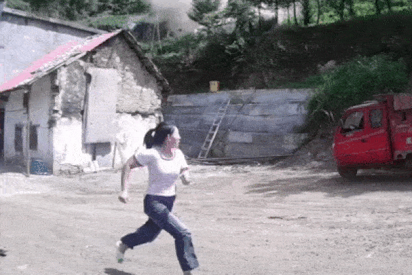 TRUNG QUỐC - Khoảnh khắc người dân hốt hoảng tháo chạy khi một chiếc xe trộn xi măng lăn từ trên đồi xuống phá hủy 1 ngôi nhà.