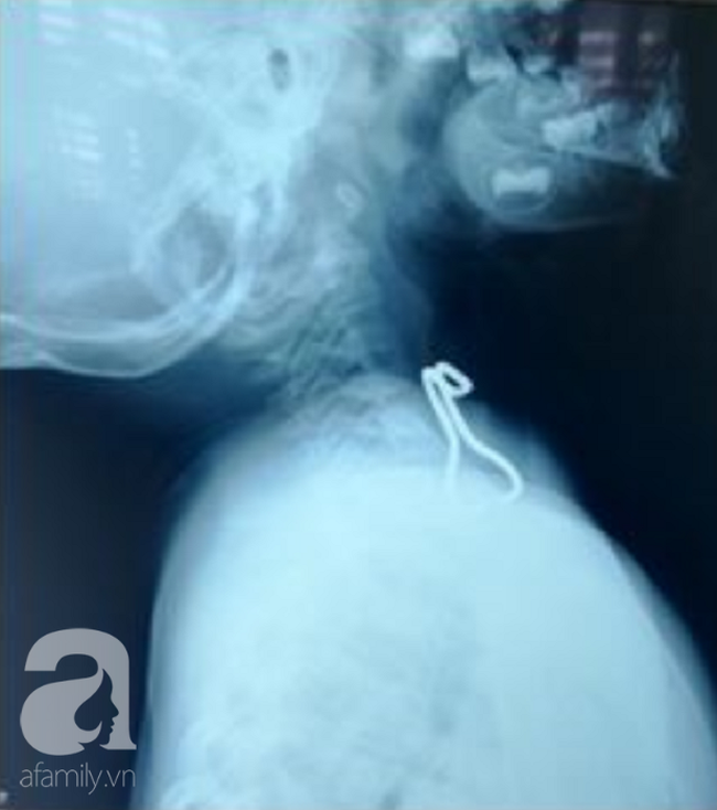 Trường hợp trẻ nuốt móc sắt phơi quần áo, phải cấp cứu.