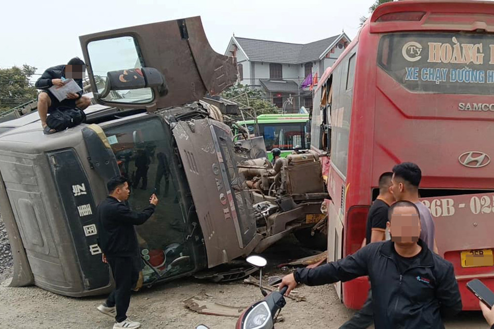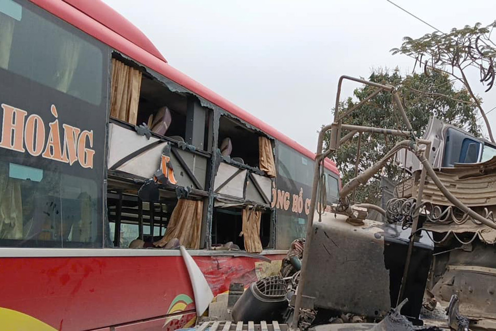Tại hiện trường, xe đầu kéo mang biển kiểm soát Hà Nội bị lật chắn ngang đường, phần thùng xe chở đá bị đổ. Cabin của xe này bị biến dạng và đổ khỏi thân xe. Ô tô khách mang biển số 36B- 025.XX bị hư hỏng phần thân xe, nhiều ô cửa kính vỡ vụn. Ô tô con loại 5 chỗ ngồi bị hư hỏng nặng.