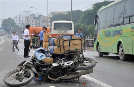 Khoảng 10h sáng nay, xe khách 45 chỗ đang đi với tốc độ cao trên cầu vượt Mai Dịch (Cầu Giấy) theo hướng về Phạm Văn Đồng thì bất ngờ mất lái đâm vào 2 người đèo nhau trên chiếc xe đạp điện. Cú đâm mạnh, khiến hai người này bắn văng xuống đường, một người tử vong tại chỗ và người kia bị thương nặng.