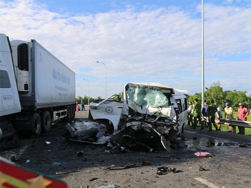 Khoảng 2h15 ngày 30/7, ô tô chở gia đình chú rể từ Quảng Trị vào rước dâu tại Bình Định, đến thị xã Điện Bàn, tỉnh Quảng Nam thì va chạm với container khiến 13 người thiệt mạng.