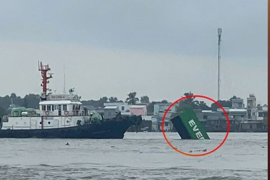 Vụ va chạm tàu hàng quốc tịch Singapore với sà lan làm 9 container rỗng bị rơi xuống sông và trôi về khu vực phà Cát Lái.